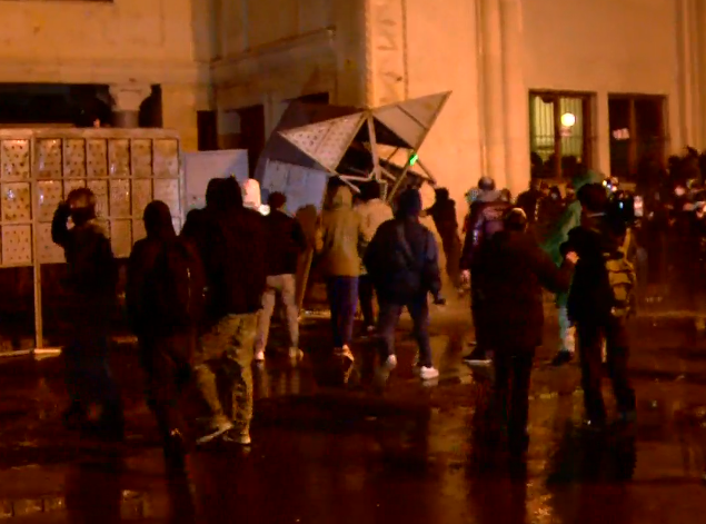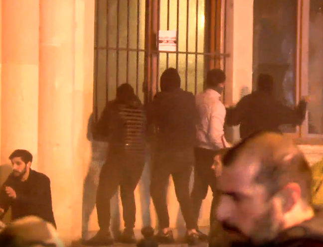 პარლამენტის მთავარ შესასვლელთან ახალგაზრდები შენობის მინებს ამსხვრევენ, ისვრიან გაურკვეველ საგნებს მას შემდეგ, რაც გიორგი ვაშაძემ აქციის მონაწილეებს მოუწოდა, რომ პარლამენტის შემობა ალყაში მოექციათ. პოლიციამ გამოიყენა წყლის ჭავლი მათ შესაჩერებლად.