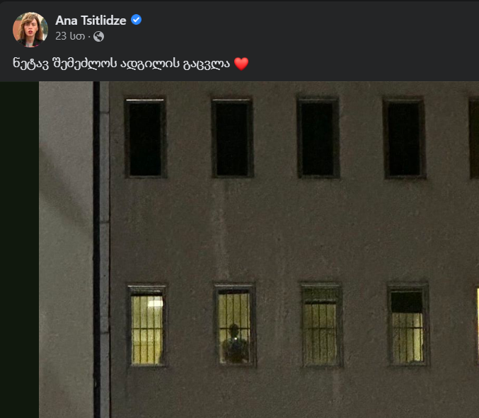 ბოლო სიახლე საზოგადოება ანა წითლიძემ მიხეილ სააკაშვილის ნაცვლად პატიმრობა ინატრა მარშალ პრესი 17/04/2023 Facebook Messenger WhatsApp Viber Twitter LinkedIn ანა წითლიძე მიხეილ სააკაშვილის ნაცვლად პატიმრობას ნატრობს. ამის შესახებ მან სოციალურ ქსელში დაწერა და თან დაურთო ფოტო კლინიკა “ვივამედიდან”, როდესაც მიხეილ სააკაშვილი, აღდგომის ღამეს სანთლით ხელში იდგა ფანჯარაში. Post navigation Previous: უკრაინას უსაფრთხოების ქმედითი გარანტიები ნატო-ში გაწევრიანებამდე სჭირდებაNext: “ნაციონალები” უკრაინას სტუმრობენ
