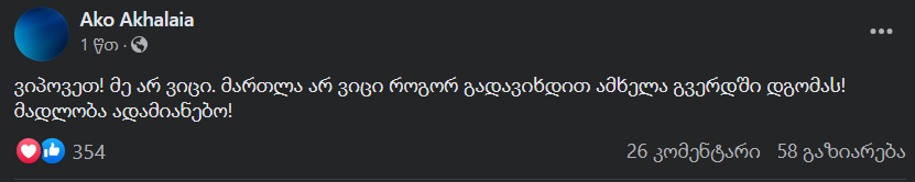 ბოლო სიახლე საზოგადოება დიდ დიღომში გაუჩინარებული 11 წლის გოგონა იპოვეს მარშალ პრესი 17/06/2023 დიდ დიღომში დაკარგული 11 წლის მარიამიი იპოვნეს. ინფორმაცია მისმა ბიძამ გაავრცელა. Post navigation Previous: ციხეში უნდა გადავიდეს და იქიდან უხელმძღვანელოს პოლიტიკურ პროცესებს „ნაცმოძრაობაში – იაგო ხვიჩია სააკაშვილზეNext: ეს არაა პატიოსანი ქცევა – ლიკა ბასილაია-შავგულიძე სააკაშვილსა და მის გარემოცვაზე