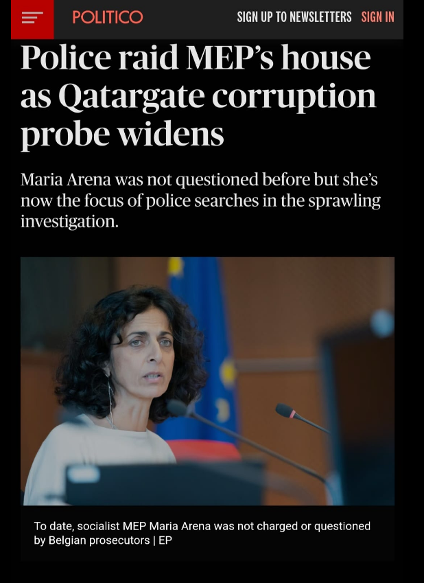 ანალიტიკოსი გია აბაშიძე გამოცემა POLITICO-ს მიერ გავრცელებულ ინფორმაციას ეხმიანება, რომლის თანახმად, ბელგიის პოლიციამ „კატარგეითის“ საქმეზე მიმდინარე გამოძიების ფარგლებში ევროპარლამენტარ მარია არენას სახლში ჩხრეკა ჩაატარა. ანალიტიკოსის თქმით, ევა კაილის, მარკ ტარაბელას და ანდრეა კოცოლინოს შემდეგ მარია არენა რიგით მეოთხე ევროპარლამენტარია, რომელთან დაკავშირებითაც პოლიციამ საგამოძიებო ქმედებები ჩაატარა.