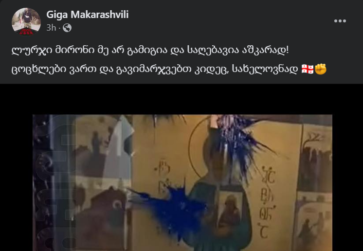 ბოლო სიახლე საზოგადოება ხატის შეურაცხყოფას მიესალმება გიგა მაქარაშვილიც მარშალ პრესი 09/01/2024 Facebook Messenger WhatsApp Viber Twitter LinkedIn ხატის შეურაცხყოფას მიესალმება გიგა მაქარაშვილიც. რომელიც სოციალურ ქსელში წერს: Post navigation Previous: ხატის შეურაცხყოფას მიესალმებიან საქართველოდან გაქცეული წვერიანი “ქალები”Next: ხატის შეურაცხყოფით კმაყოფილია ელენე ხოშტარია