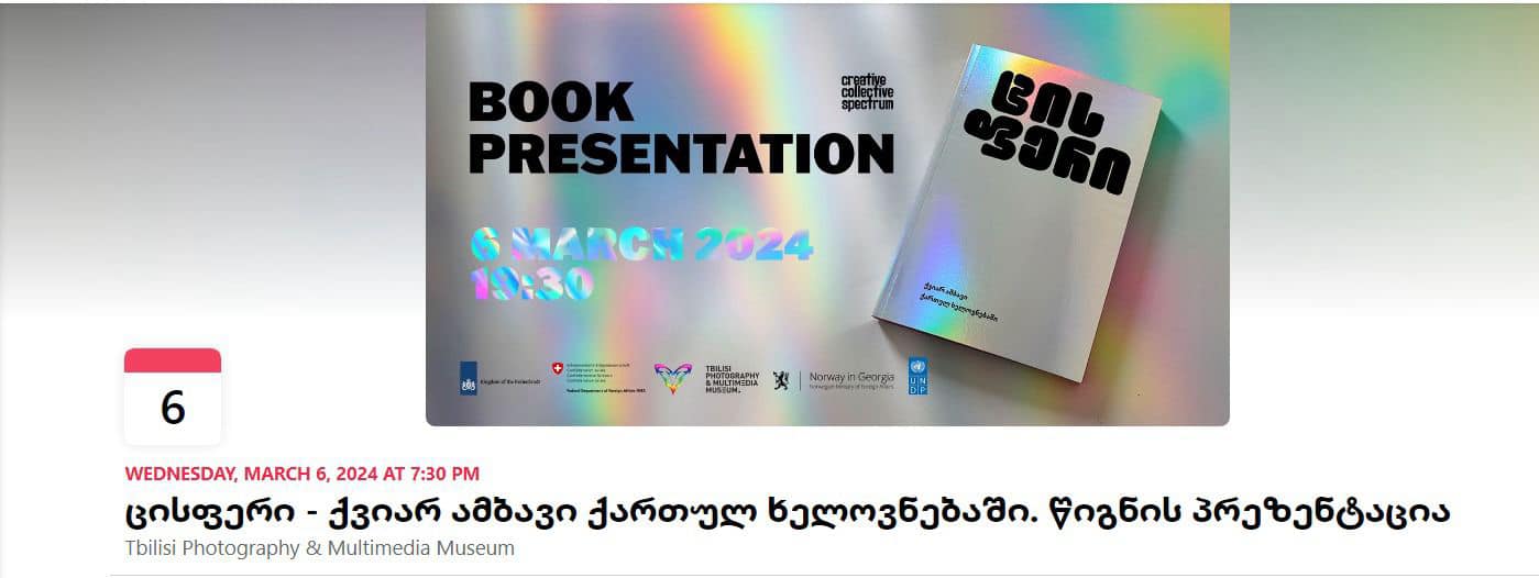 ჯერ იყო და მევახშე ხაზარაძემ ტრანსგენდერებზე ფილმი დააფინანსა და გეი დათვის პრიზი მოიგო ბერლინში, ახლა შუაგულ თბილისში LGBT პროპაგანდის მორიგი ღონისძიება დაუგეგმავთ და “ქვიარ ამბებზე ხელოვნებაში”- ამ სახელწოდების ქვეშ ხალხს ამაყად ეპატიჟებიან. ყველაზე დიდი უბედურება კი ის არის, რომ პროექტი განხორციელებულია შემოქმედებითი გაერთიანება სპექტრის მიერ ჰოლანდიის საელჩოს, შვეიცარიის საელჩოს (Federal Department of Foreign Affairs FDFA) და გაეროს განვითარების პროგრამის (UNDP) ფინანსური მხარდაჭერით, – ასე ეხმიანება „ხალხის ძალის” წევრი, ზურაბ ქადაგიძე, 6 მარტს დაგეგმილ წიგნის პრეზენტაციას სახელწოდებით “ცისფერი – ქვიარ ამბავი ქართულ ხელოვნებაში”.