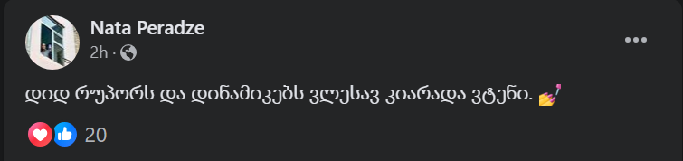 ნატა ფერაძე წერს, რომ დიდ რუპორს და დინამიკებს ამზადებს.