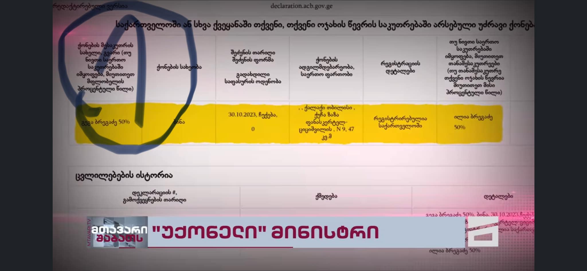 იუსტიციის მინისტრი რატი ბრეგაძე ეხმიანება “მთავარი არხი”-ს სიუჟეტს მის ქონებასთან დაკავშირებით: