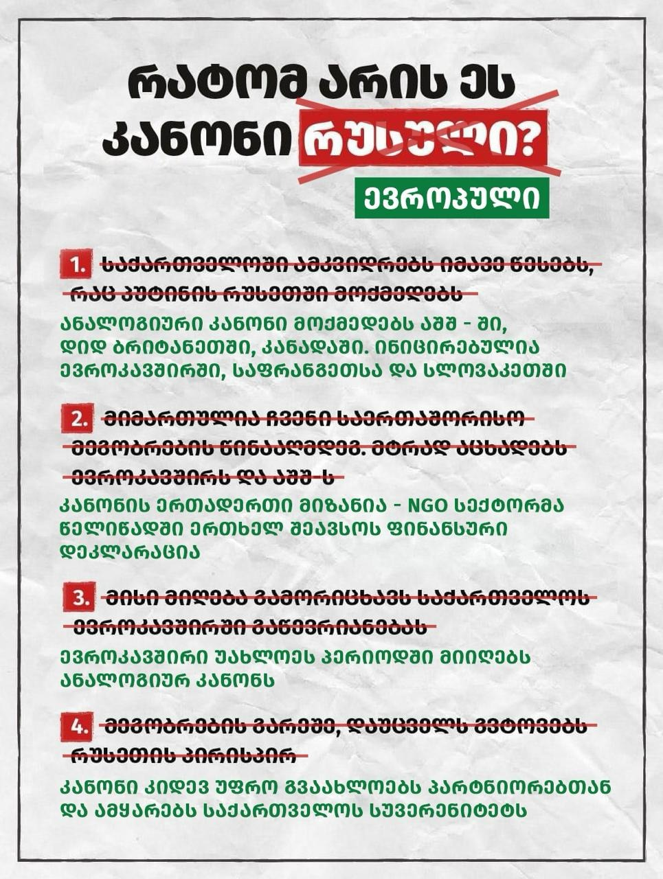 დავით ქართველიშვილი ამ ბანერის სახეცვლილ ვარიანტს ავრცელებს, რომელშიც დასაბუთებულია, რატომ არ არის ეს კანონი რუსული.