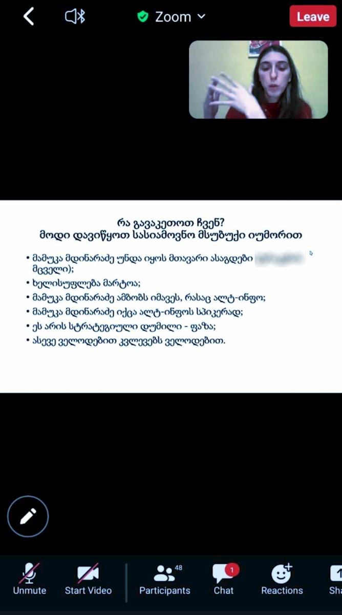 ვრცელდება ჩანაწერი ლგბტ ორგანიზაციების Zoom-შეხვედრიდან, რომელსაც „პრაიდის“ დირექტორი მარიამ კვარაცხელია ატარებს, სადაც მამუკა მდინარაძის დისკრედიტაცია დაიგეგმა.